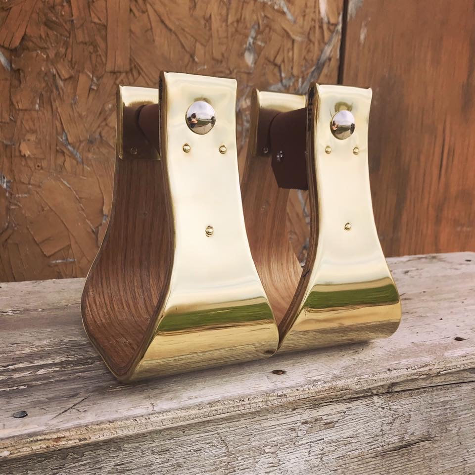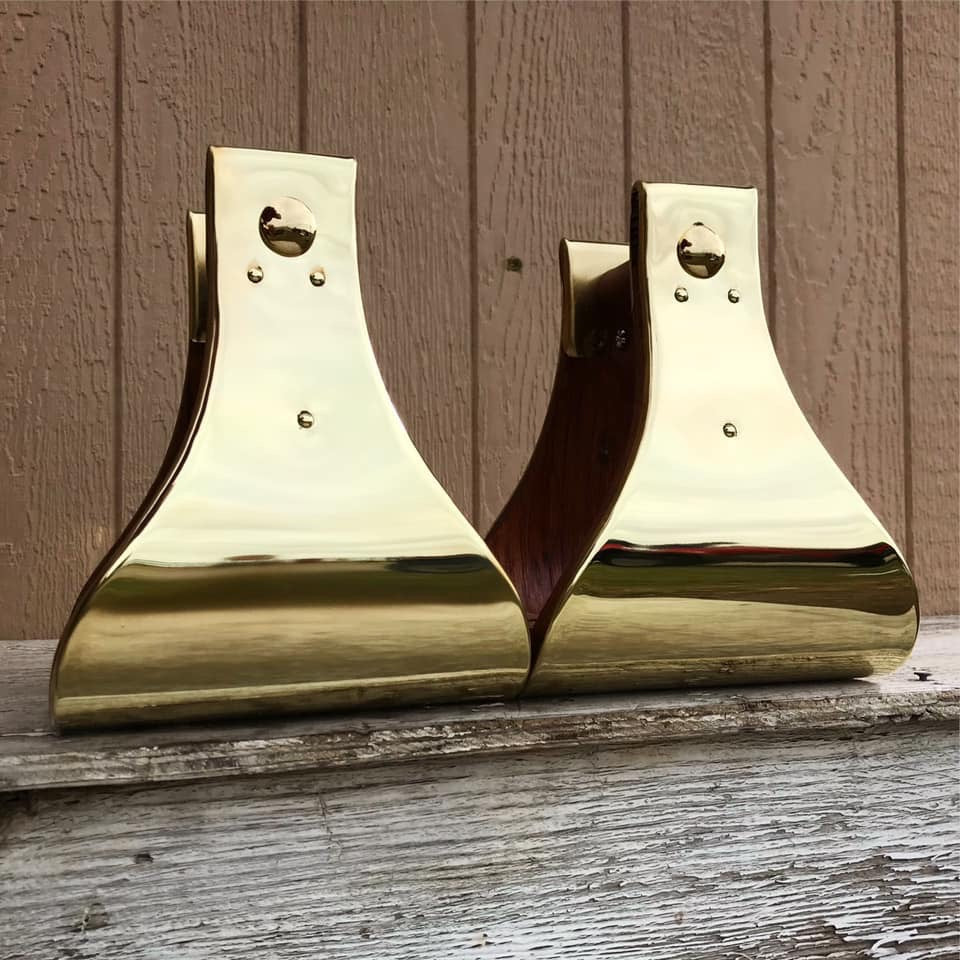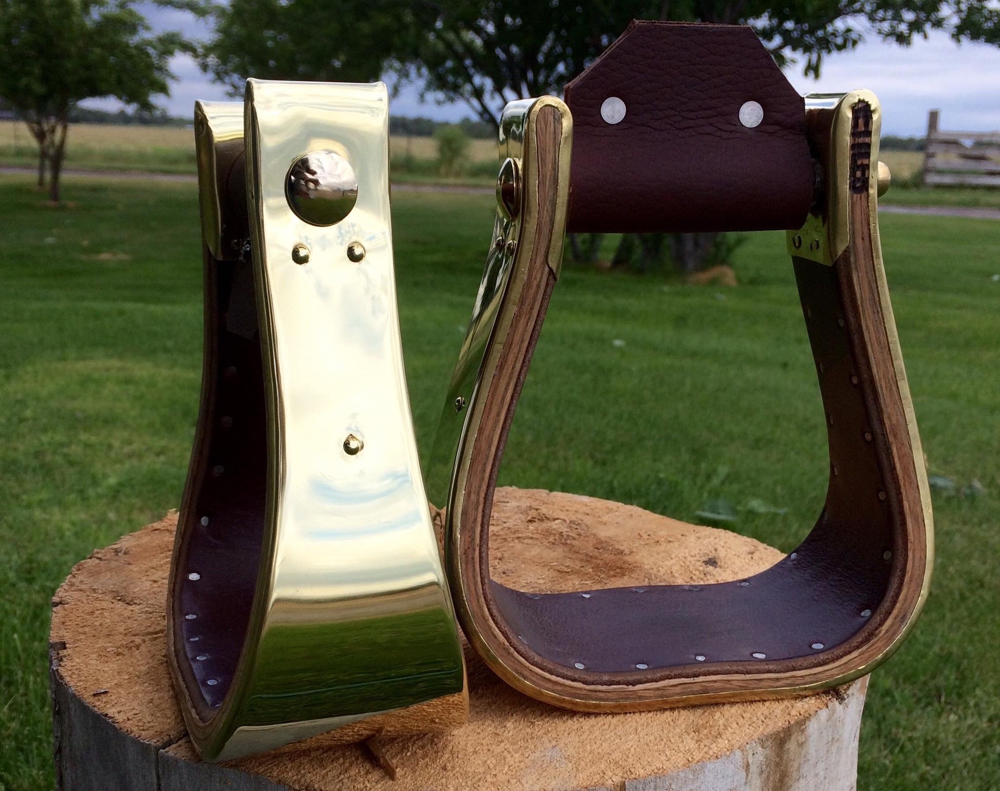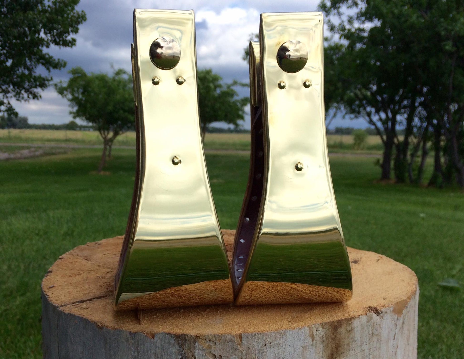 The Bell style Stirrups are available in sizes 3"-6". If you would like to add your brand or initials, please send us a message before ordering. We can also add blocks, leather lining, and levelers if desired.