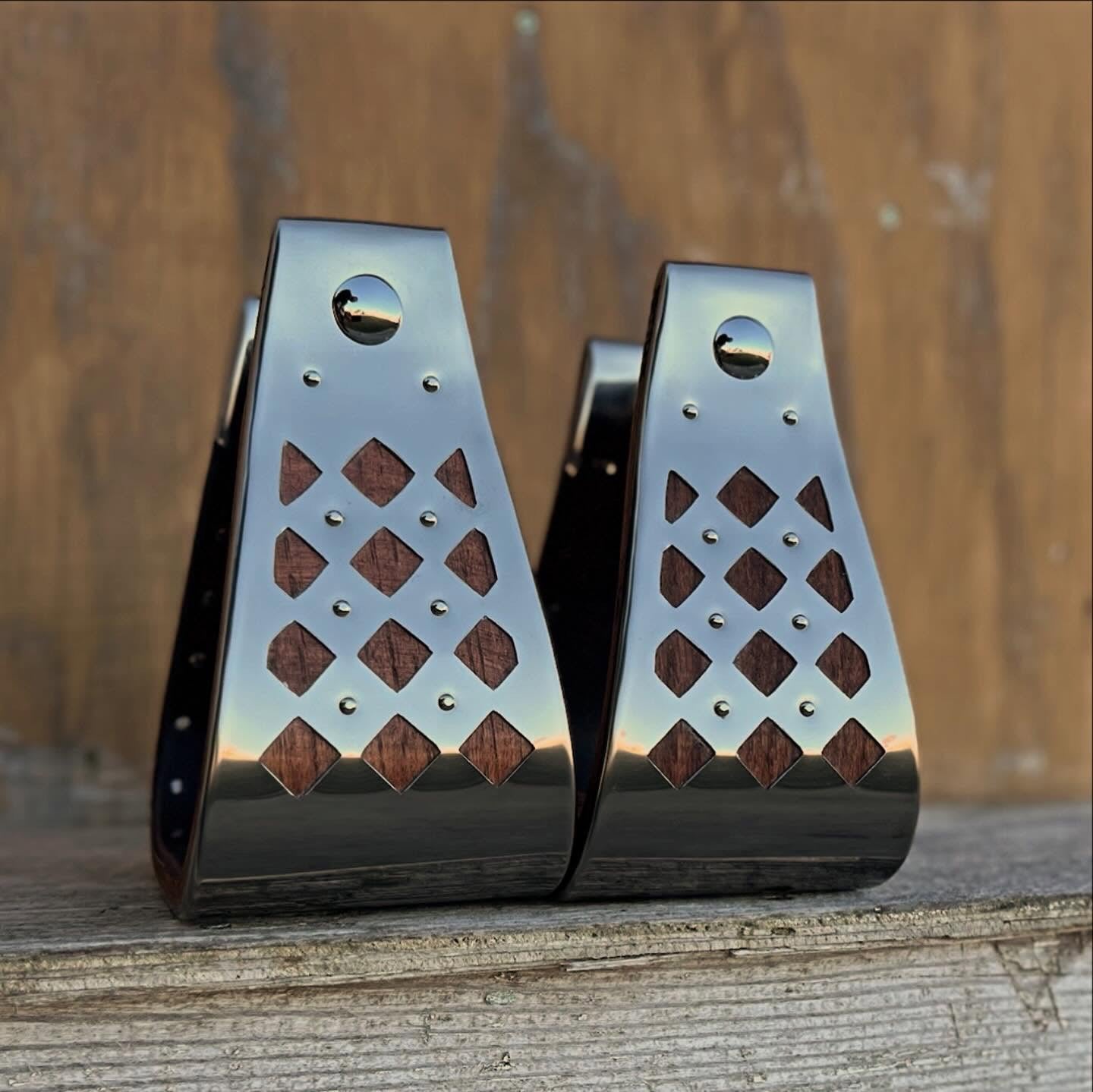 The diamond style is available in sizes 4"-6" and can be cut out of stainless, brass, or copper. Heel blocks, leather lining, or levelers can be added.